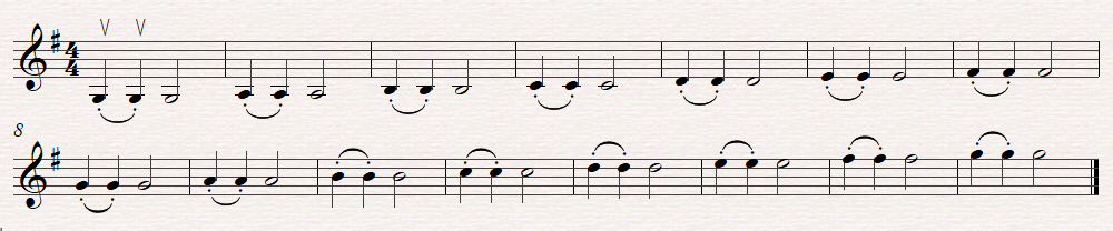 - A Major – WELL DONE on putting the slurs in today! Flip a coin to decide whether to play it slurred or separate bows each time you practice.