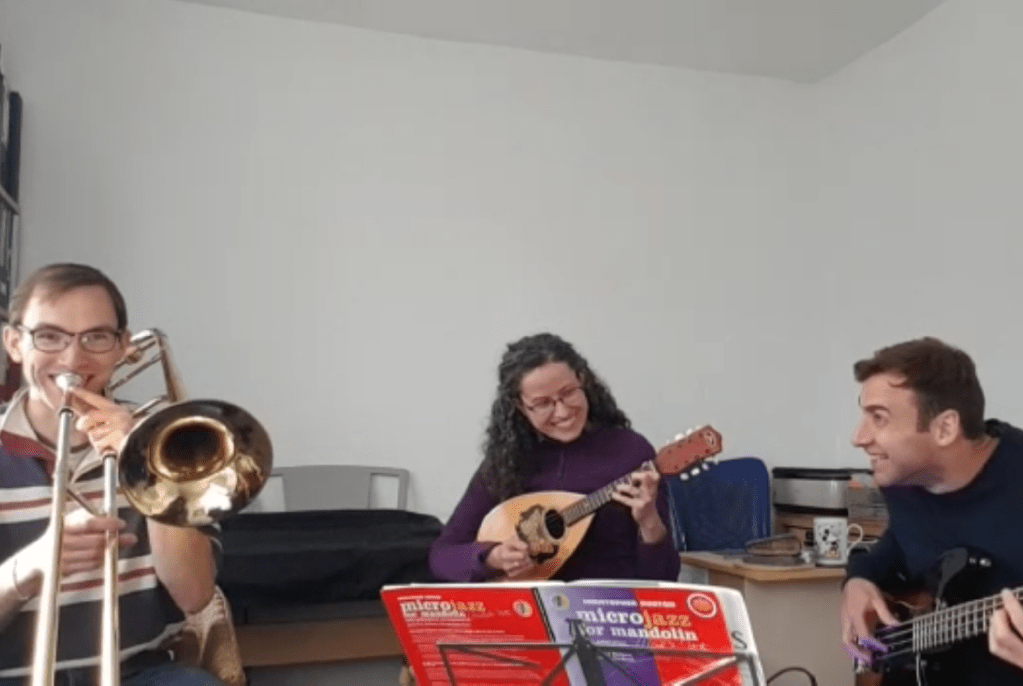 The highlight of the month’s playing was another jam session with our friend Lee, who you may have read about in my Week 3 diary. We were all on our “other” instruments: me on mandolin, my trumpeter husband Sam on trombone and our drummer friend on bass guitar. Between fits of giggles, we had a great time playing classics such as Super Trooper, It’s Not Unusual and Lionel Richie’s Hello.